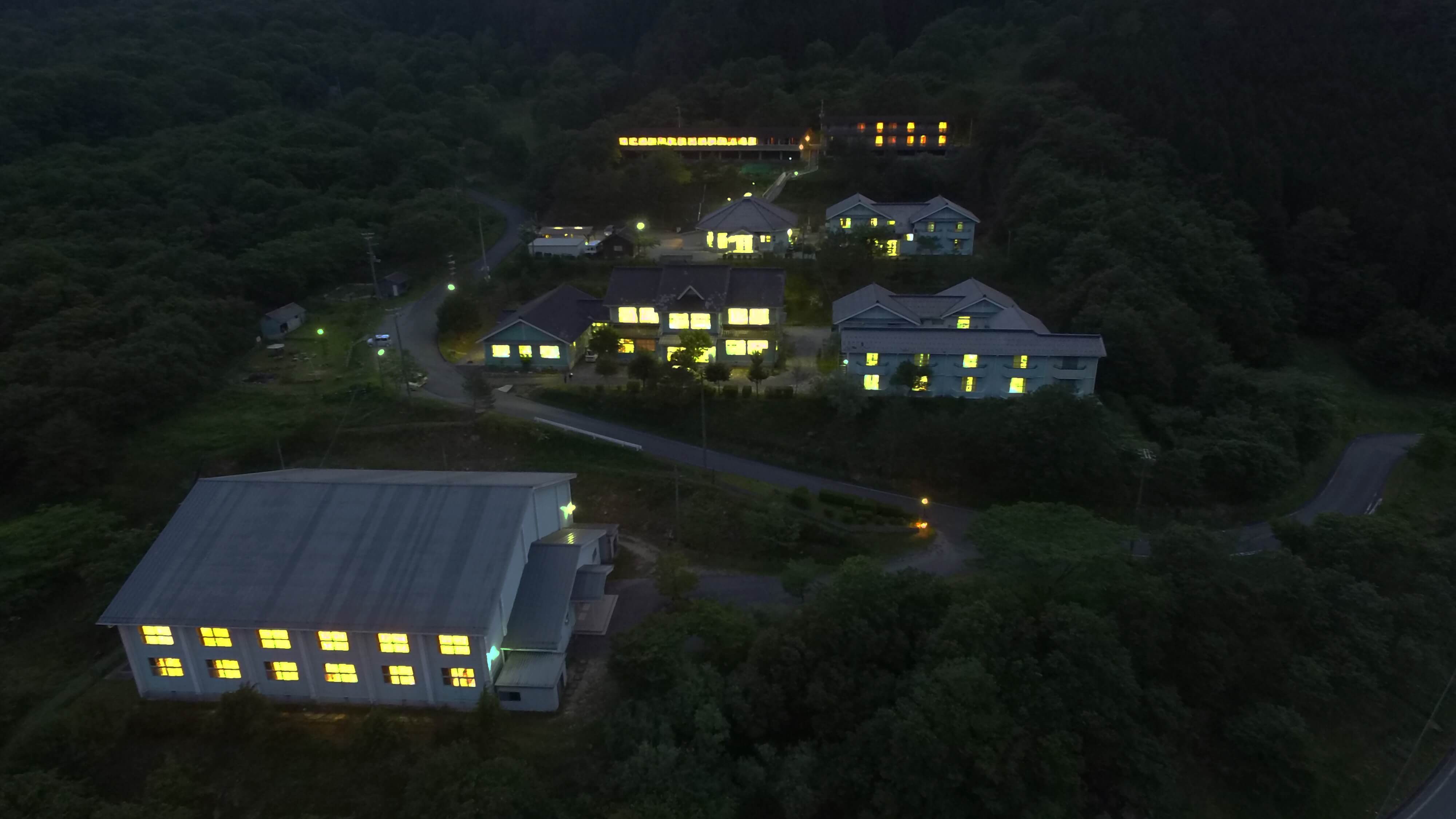 生野高原の中にあります。以前は牛の放牧場だったそうです。左奥にグラウンドが見えます。